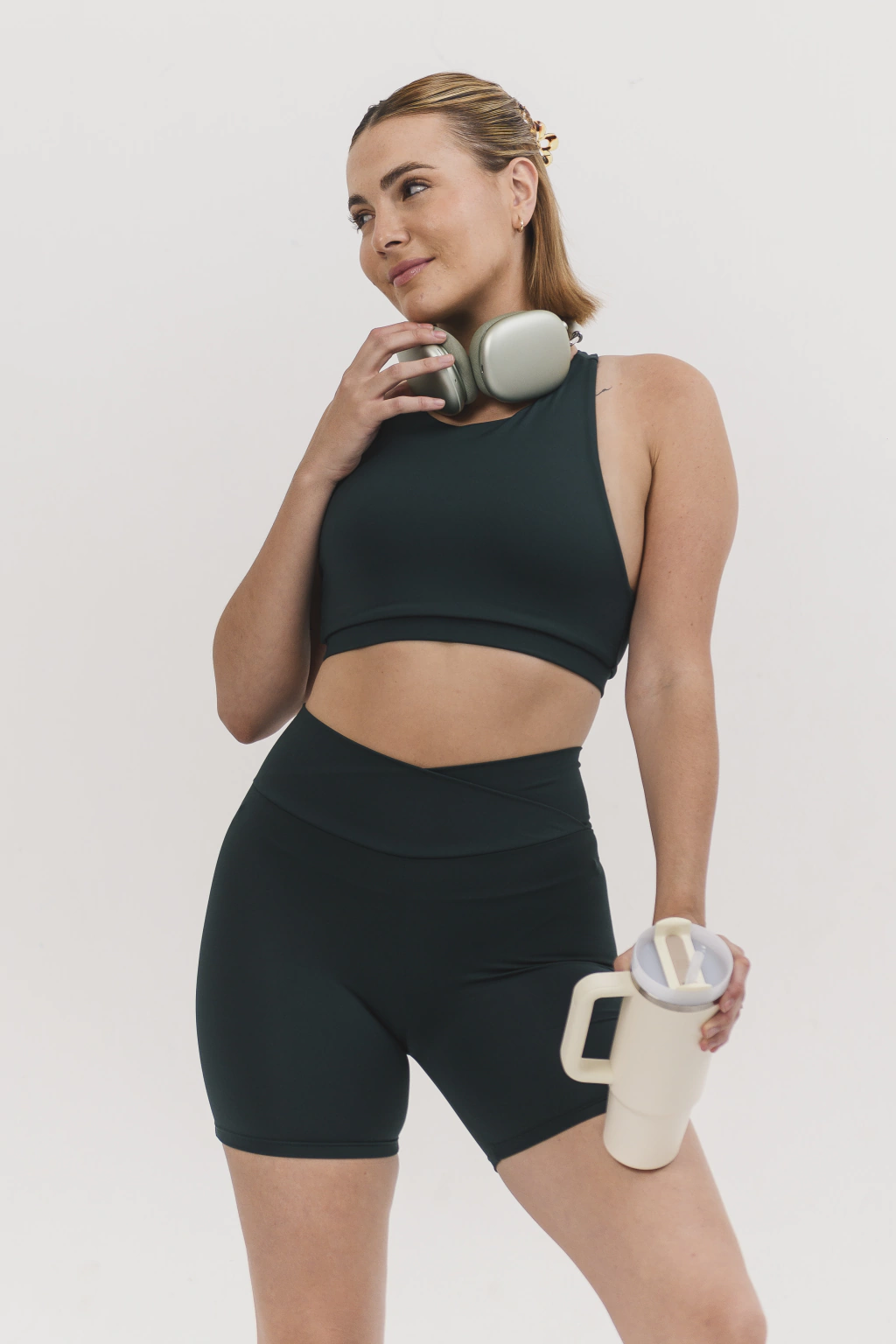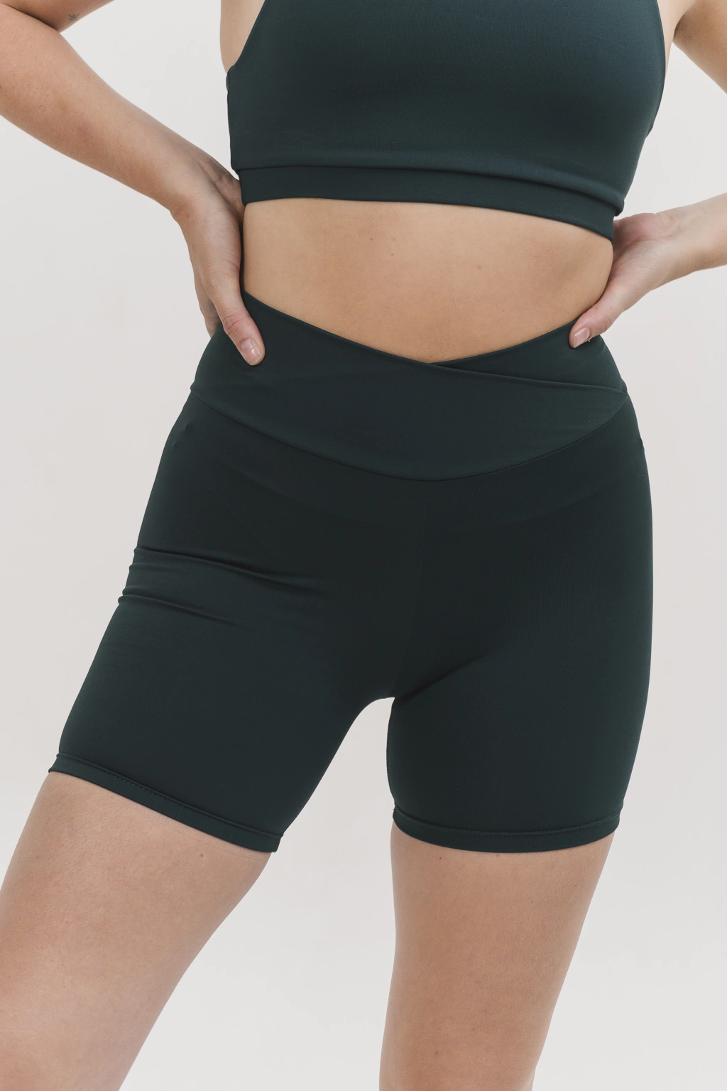 Descubrí la Biker Moon en color verde, una prenda que combina diseño y funcionalidad. Esta biker corta seamless está diseñado con un detalle en V en la cintura que estiliza y realza tu figura de manera perfecta.