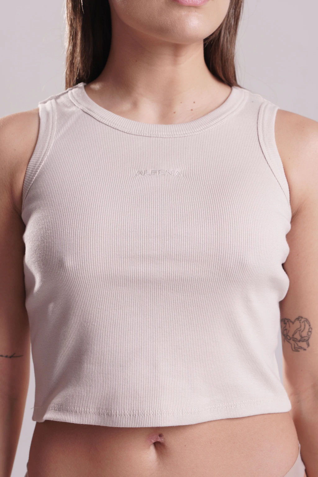 El Tank Top es la prenda perfecta para quienes buscan un look simple, cómodo y con estilo. De corte clásico y tejido acanalado, acompaña el cuerpo con suavidad y resalta la silueta sin ajustar. Su bordado ALFENA al tono le aporta un detalle sutil que lo vuelve único.