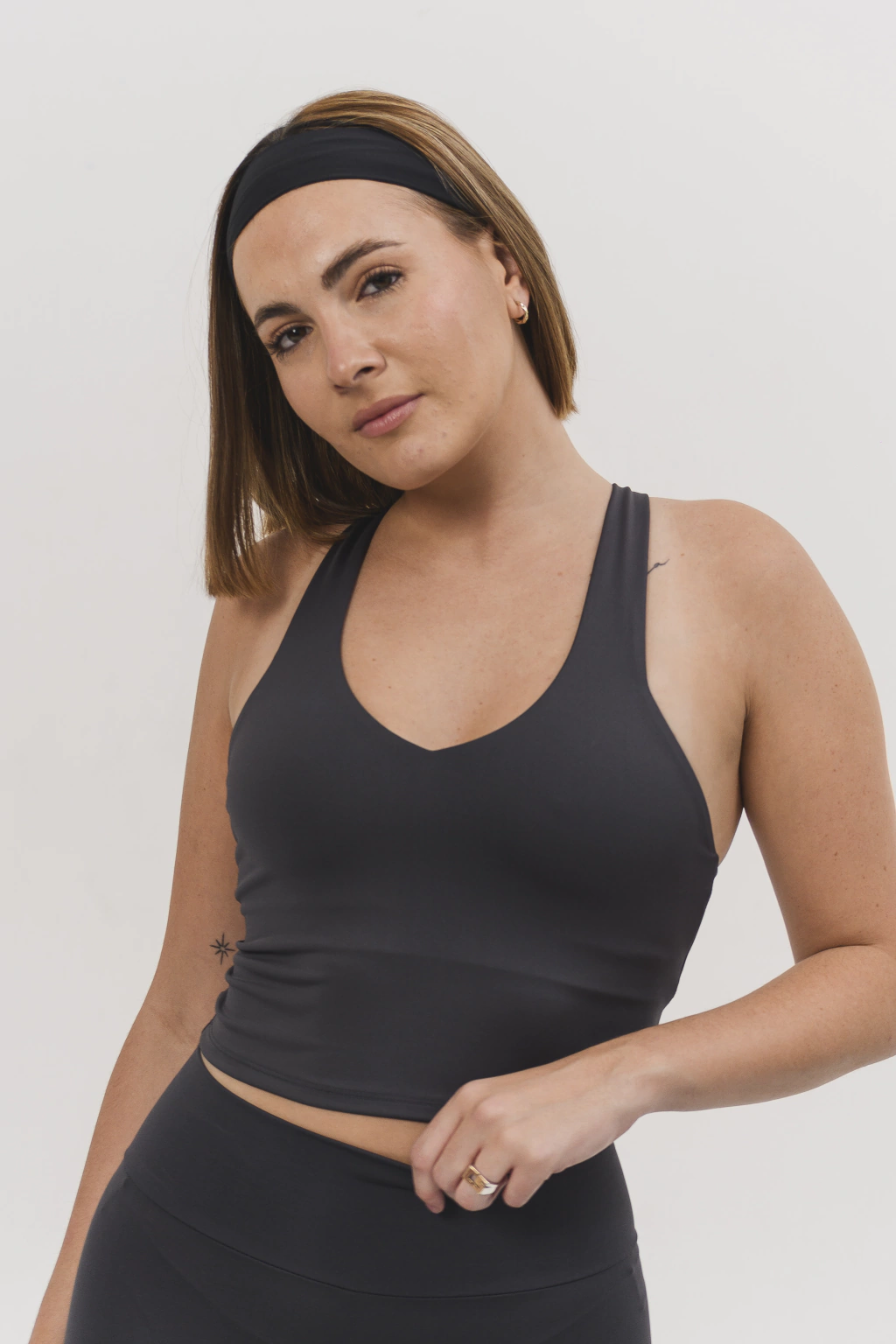 Descubrí el Top Ardha en color gris, una prenda esencial que combina estilo y confort. Este top largo medio cuenta con un corpiño interno que brinda el soporte necesario, mientras que su escote en V con trazos rectos agarra y resalta tu busto de manera sofisticada.