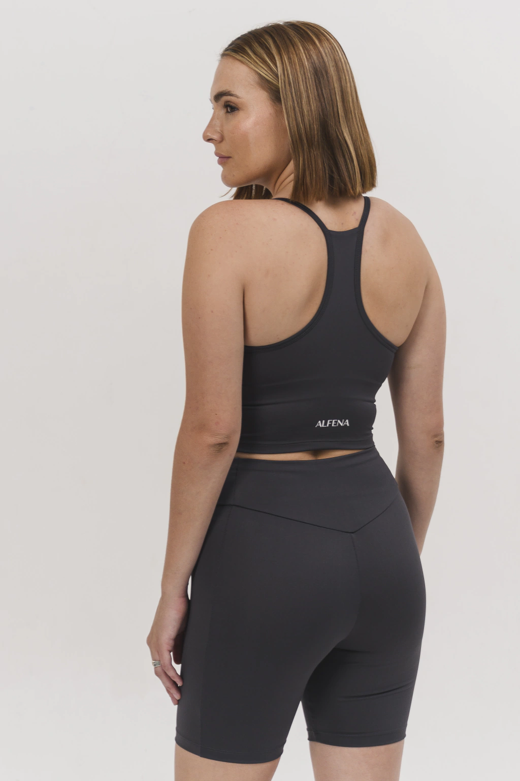 Presentamos el Top Loto en color gris, una prenda imprescindible para quienes buscan diseño y comodidad. Este top largo medio se ajusta al cuerpo, realzando tu forma y proporcionando soporte para realizar tus actividades deportivas.