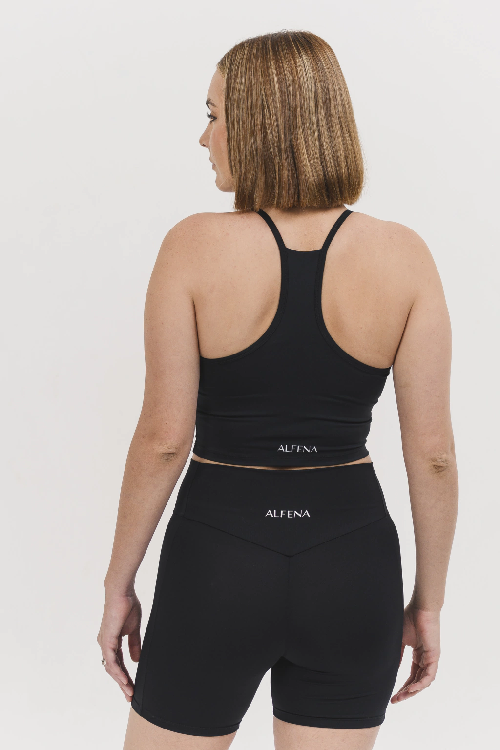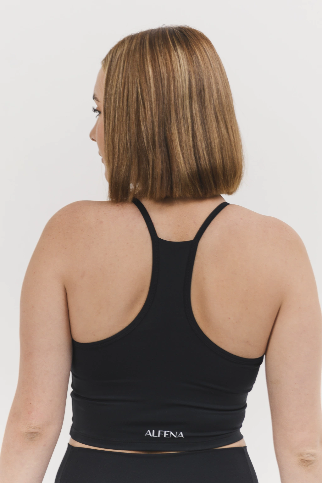 Presentamos el Top Loto en color negro, una prenda imprescindible para quienes buscan diseño y comodidad. Este top largo medio se ajusta al cuerpo, realzando tu forma y proporcionando soporte para realizar tus actividades deportivas.