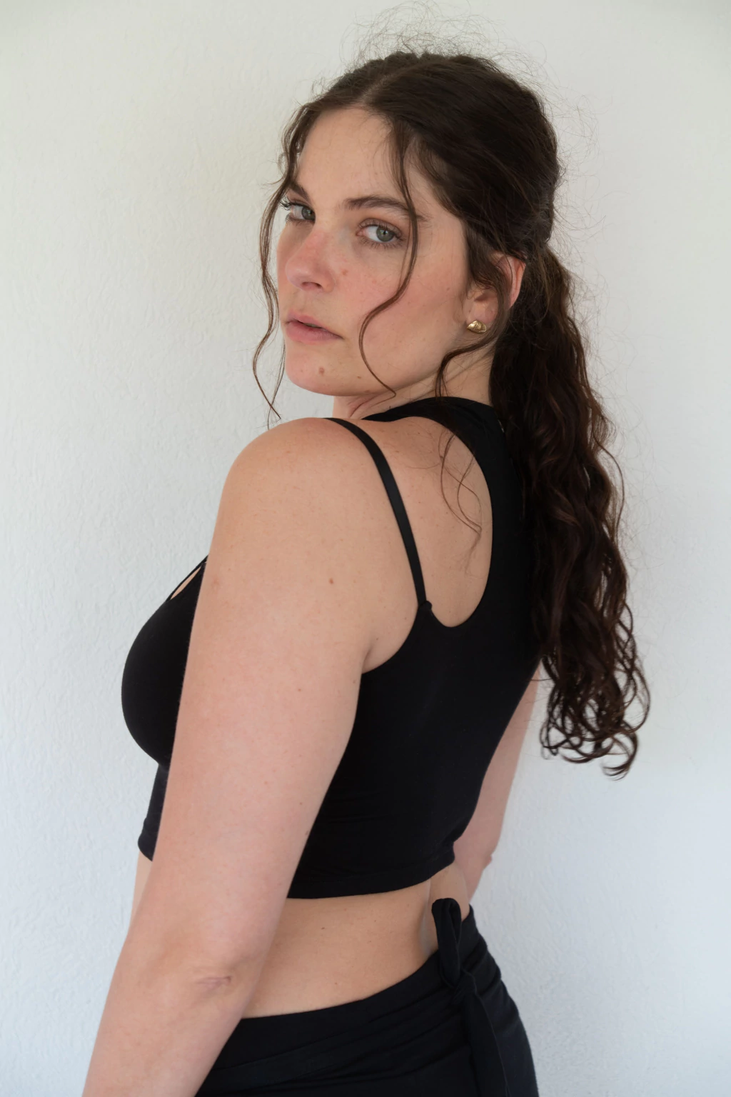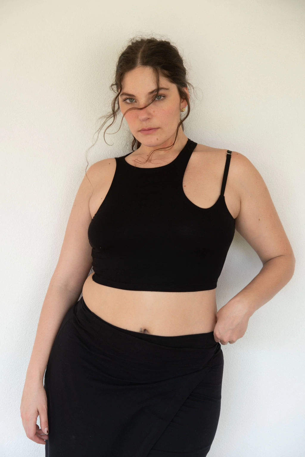 Descubrí el Top Viseo, una prenda única diseñada para combinar y elevar cualquier look con su cuello irregular. Cuenta con el detalle de un bretel elástico en un hombro que asegura un ajuste perfecto.